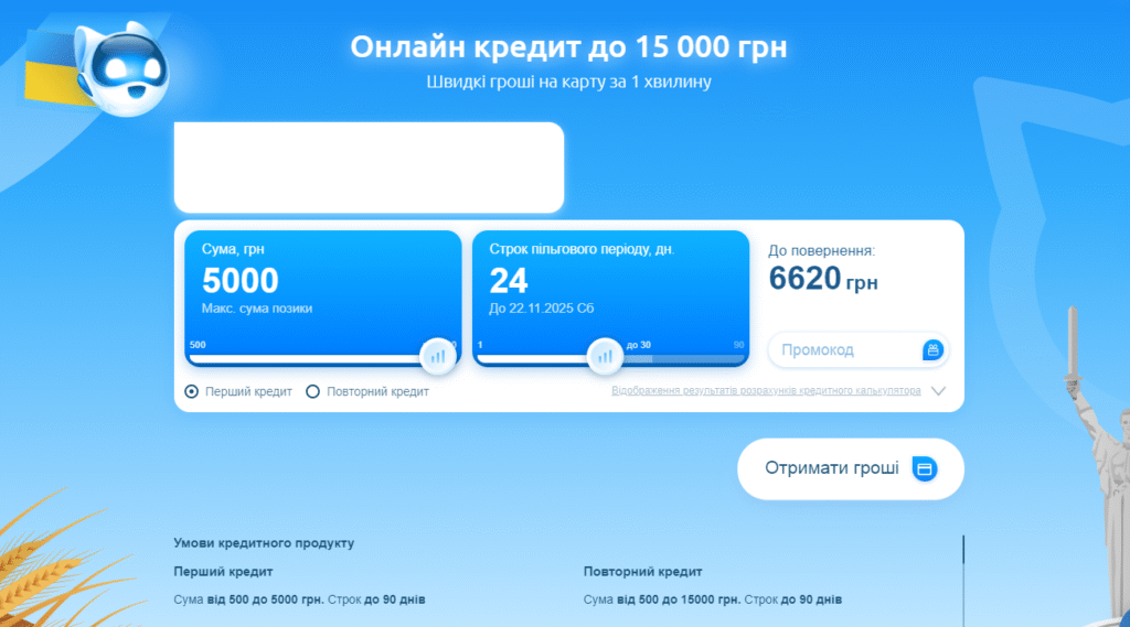 | Повторна | До 10 000 грн | До 90 днів | 0,01–1,98% |
