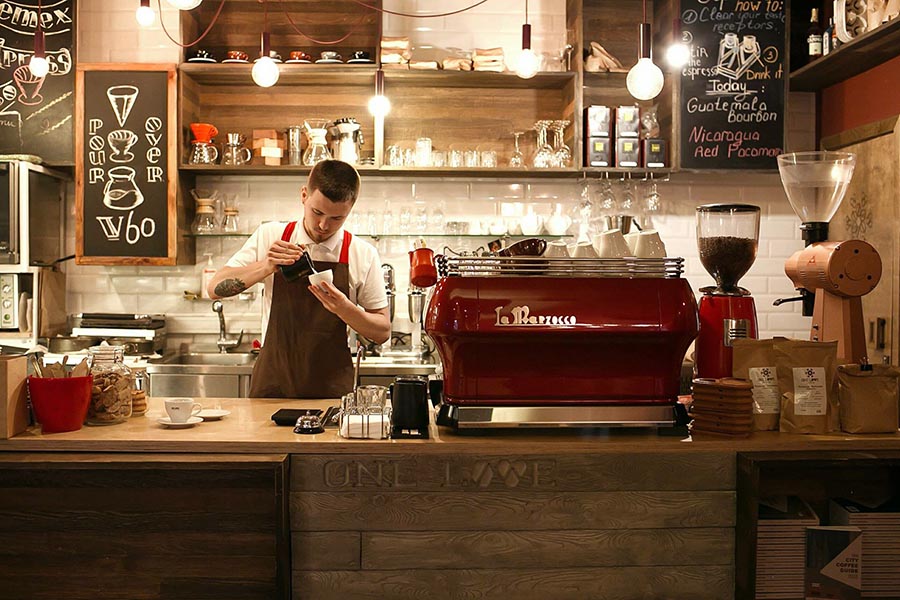 - 56.30 — Обслуговування напоями (основний — приготування та продаж кави, чаю, соків на місці).